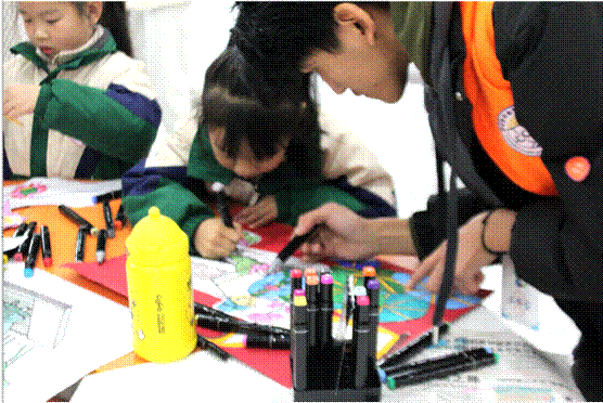 “小讲师”和大中小幼同学们混合组队共同绘画
