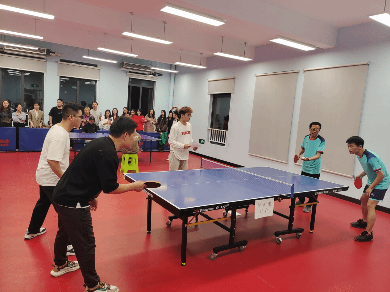 图为公司教职工积极参与乒乓球比赛