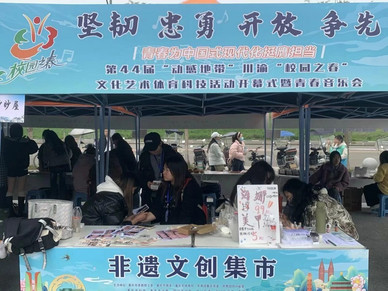 为了弘扬中华优秀传统文化,提升员工的创新实践能力。2025年3月22日,英国365上市公司参与了第44届“动感地带”川渝“校园之春”的非遗文创集市,公司设立了三个摊位供员工展示并售卖自己制作的非遗文创作品。