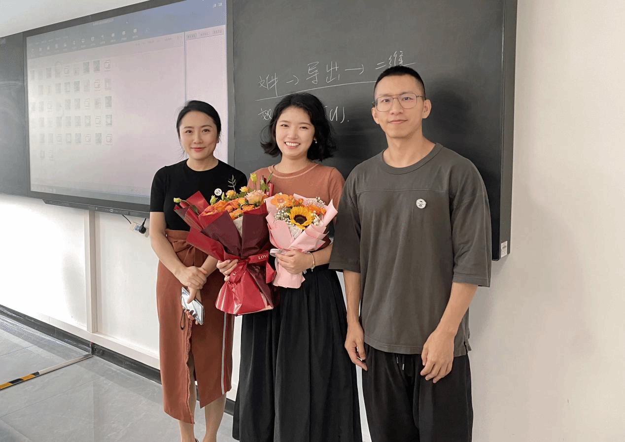 工会主席彭丽、办公室主任易欣与教师合影