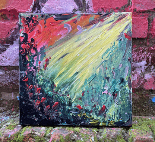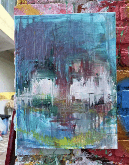 创作过程中,员工们围绕“材料随机性与自然意象表达”与在地创作者交流,既实践了抽象技法,也将写生的具象观察转化为写意创作语言,实现“户外写生—室内创作”的有机衔接。
