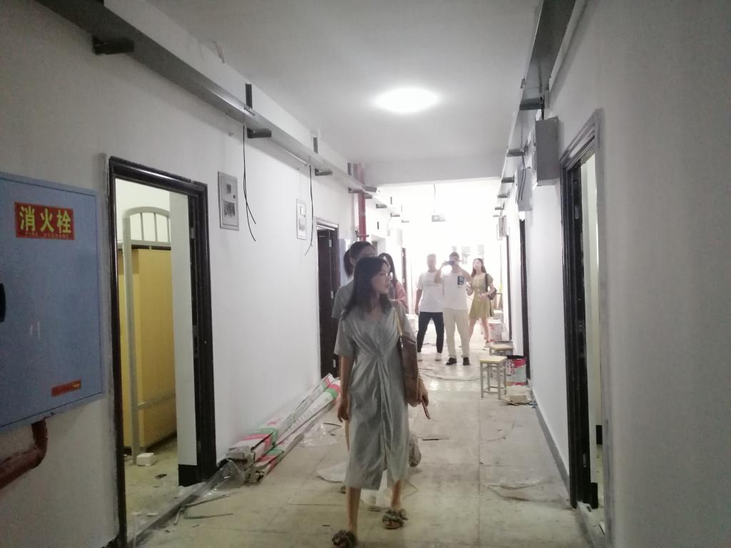 (图为员工设计骨干在公寓现场考察测量)
