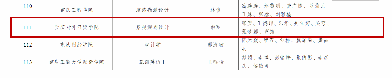 近日,重庆市教育委员会下发《关于公布2024年本科高校课程思政示范建设项目名单的通知》(渝教高函〔2024〕54号),公司彭丽教师团队申报的《景观规划设计》课程入选重庆市课程思政示范课程、课程授课教师和教学团队入选重庆市课程思政教学名师和团队。课程团队有彭丽、张翌、王德印、乐华、关钰婷、吴穹、张梦娜、卢窈8位教师。