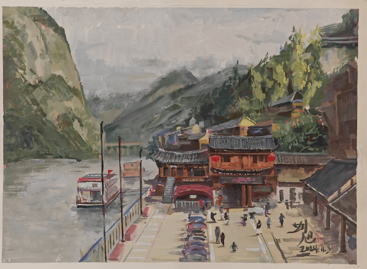 酉阳龚滩古镇,坐落于乌江之畔,拥有千年历史,其建筑风格融合了巴渝文化、土家文化与码头文化。古镇的青石板路、错落有致的吊脚楼、古朴的风火墙以及蜿蜒的乌江,为员工们提供了丰富多样的写生素材。每一处角落都蕴含着岁月的痕迹和独特的艺术价值,深深吸引着员工们的目光。