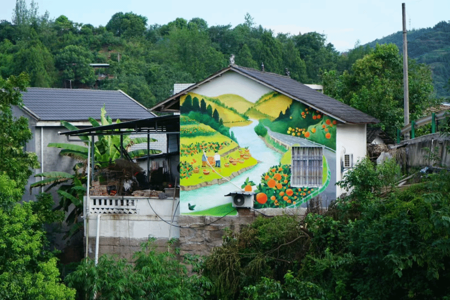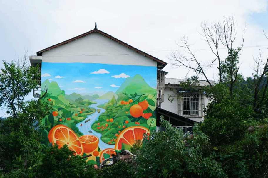 他提到,促进团以艺术设计为媒,通过多元形式助力当地农文旅融合发展,成果显著。团队顶骄阳、沐热浪,打造了《橙海牧歌》《山水画廊》两幅主题墙绘,将柑橘产业与乡村风光艺术化呈现,实现“一墙一风景、一步一文化”。
