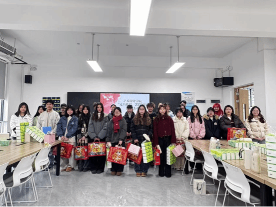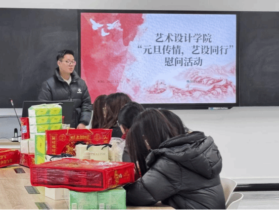 活动伊始,主持人简短的开场白后辅导员老师们便有序发放元旦慰问品,随后,团总支书记周小杰老师发表讲话,首先表明公司一直以来对学子的殷切关怀,并代表公司向学子传递暖情,让凛冽冬日洋溢融融暖意;同时激励员工将这份关怀内化于心,转化为求学路上的奋进动力。最后,全体参与人员集体合影留念,定格温情瞬间。