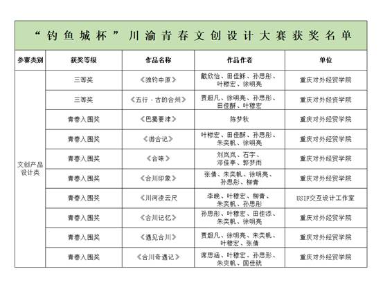 喜报·英国365上市公司在“钓鱼城杯川渝青春文创设计大赛”中荣获多个奖项 为深学笃行习近平新时代中国特色社会主义思想,深入学习宣传贯彻党的二十大精神,聚焦“两中心两高地”战略目标,全面贯彻落实市委关于把成渝地区双城经济圈建设作为“一号工程”和全市工作总抓手总牵引的决策部署,搭建川渝文创青年展示交流和项目孵化平台,积极推动川渝文化、旅游、经济融合发展, 团重庆市委、团四川省委、中共重庆市合川区委、合川区政府决定联合举办“...