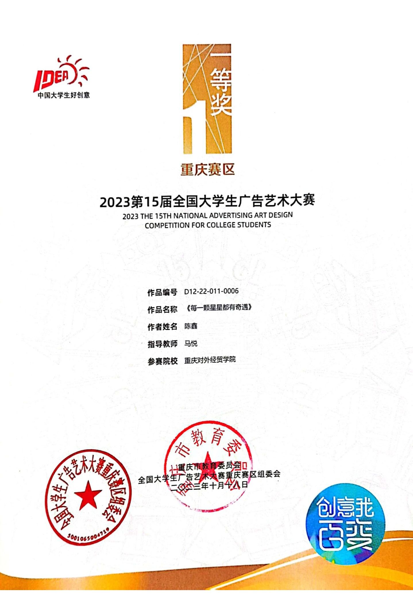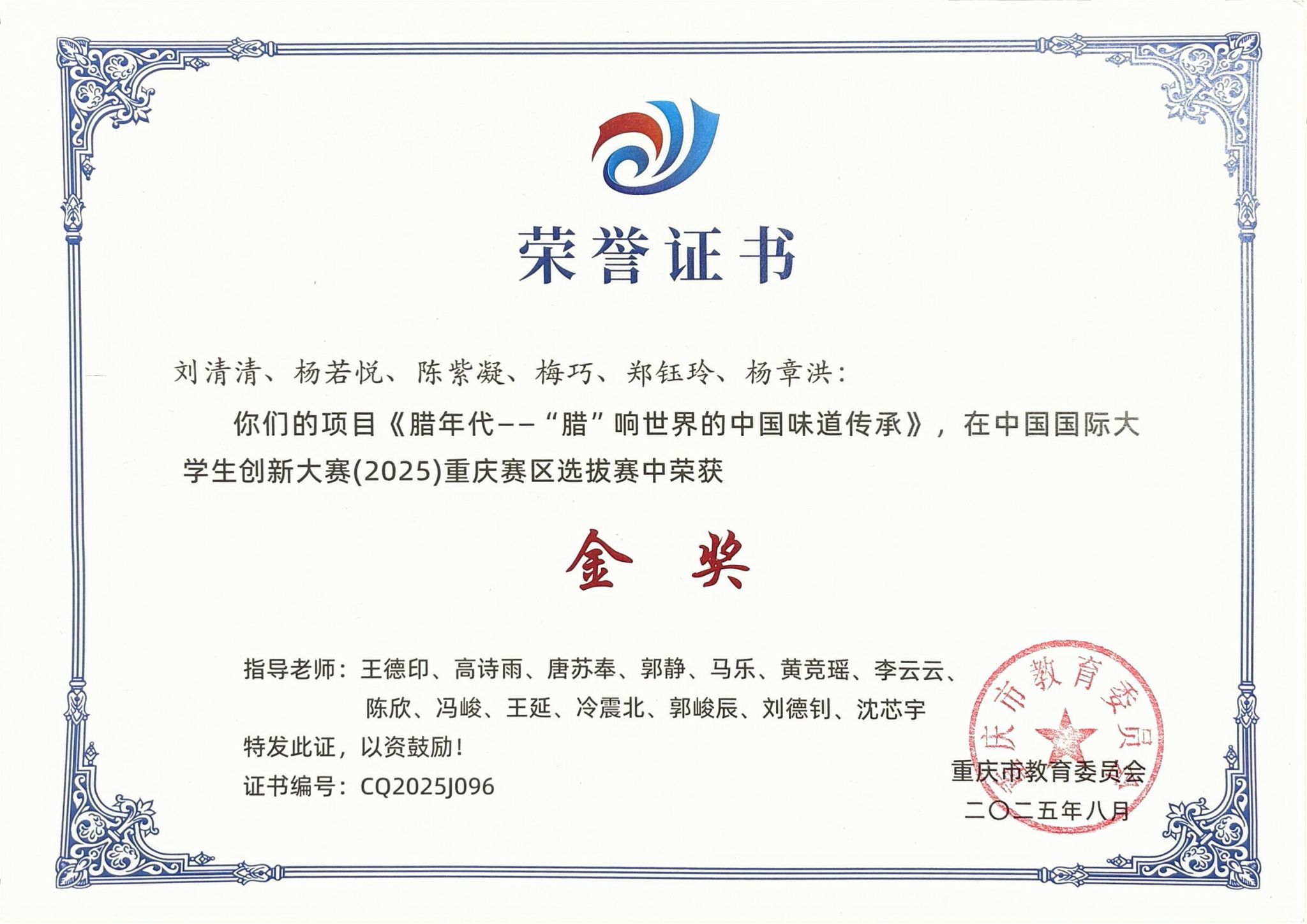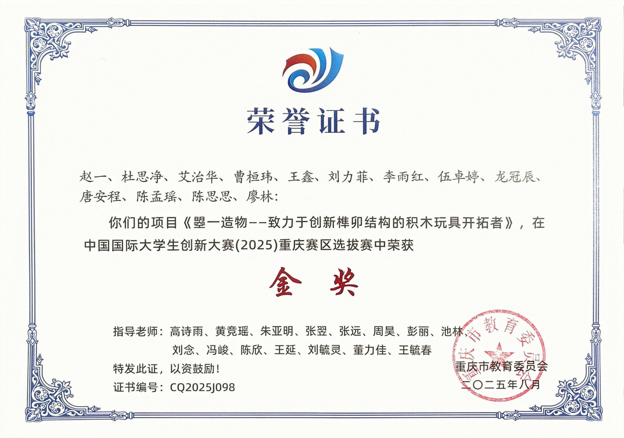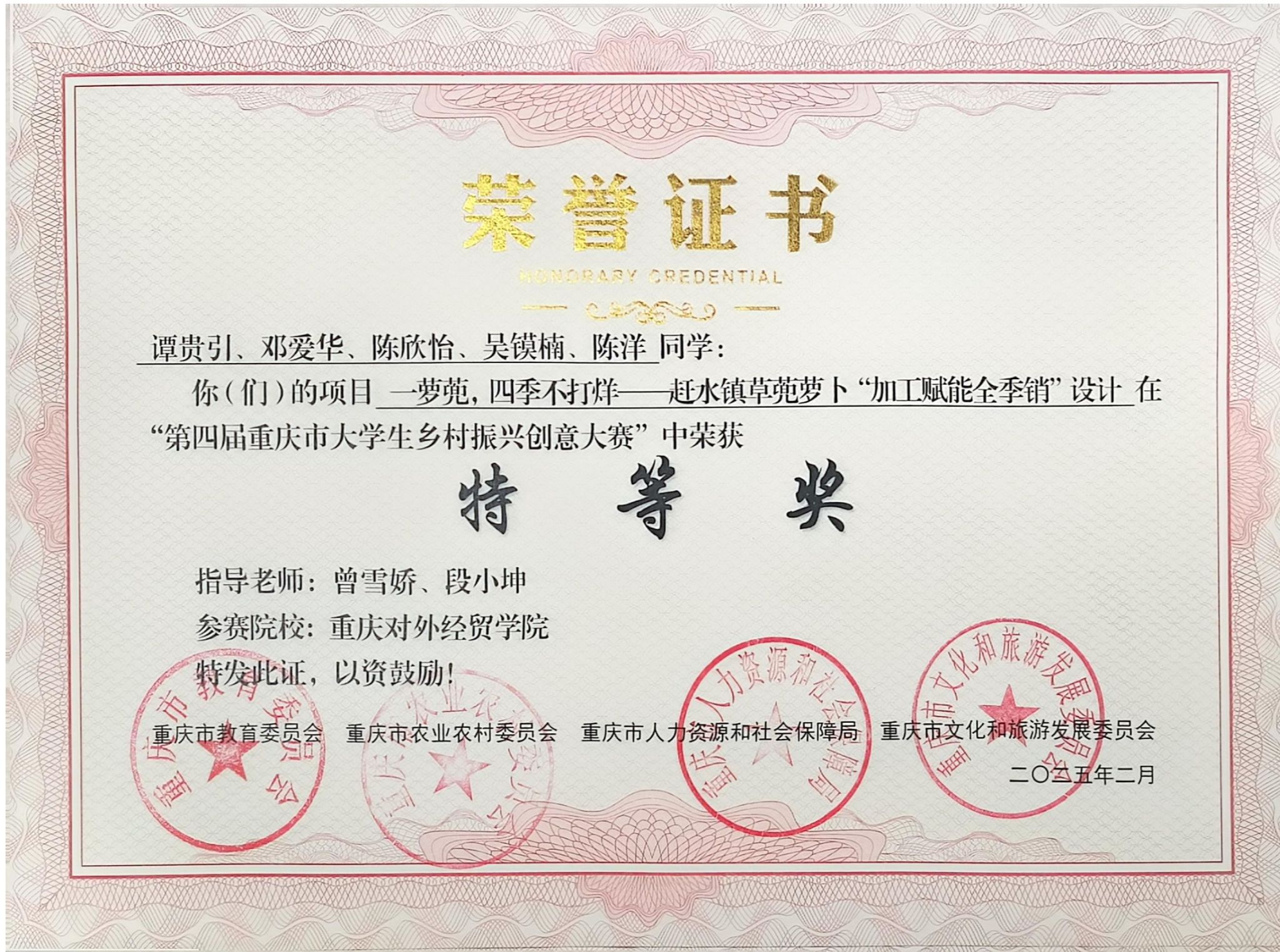 重庆市级荣誉: