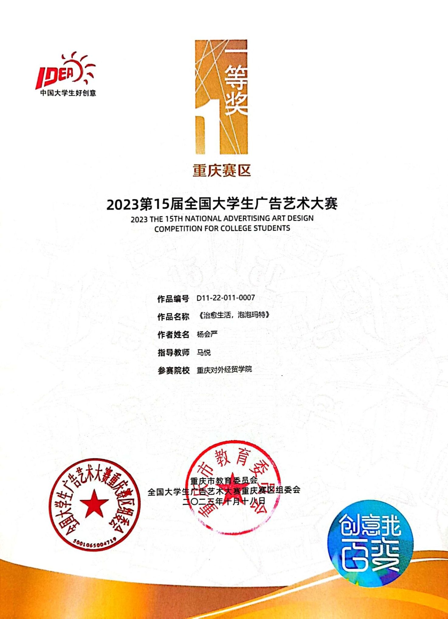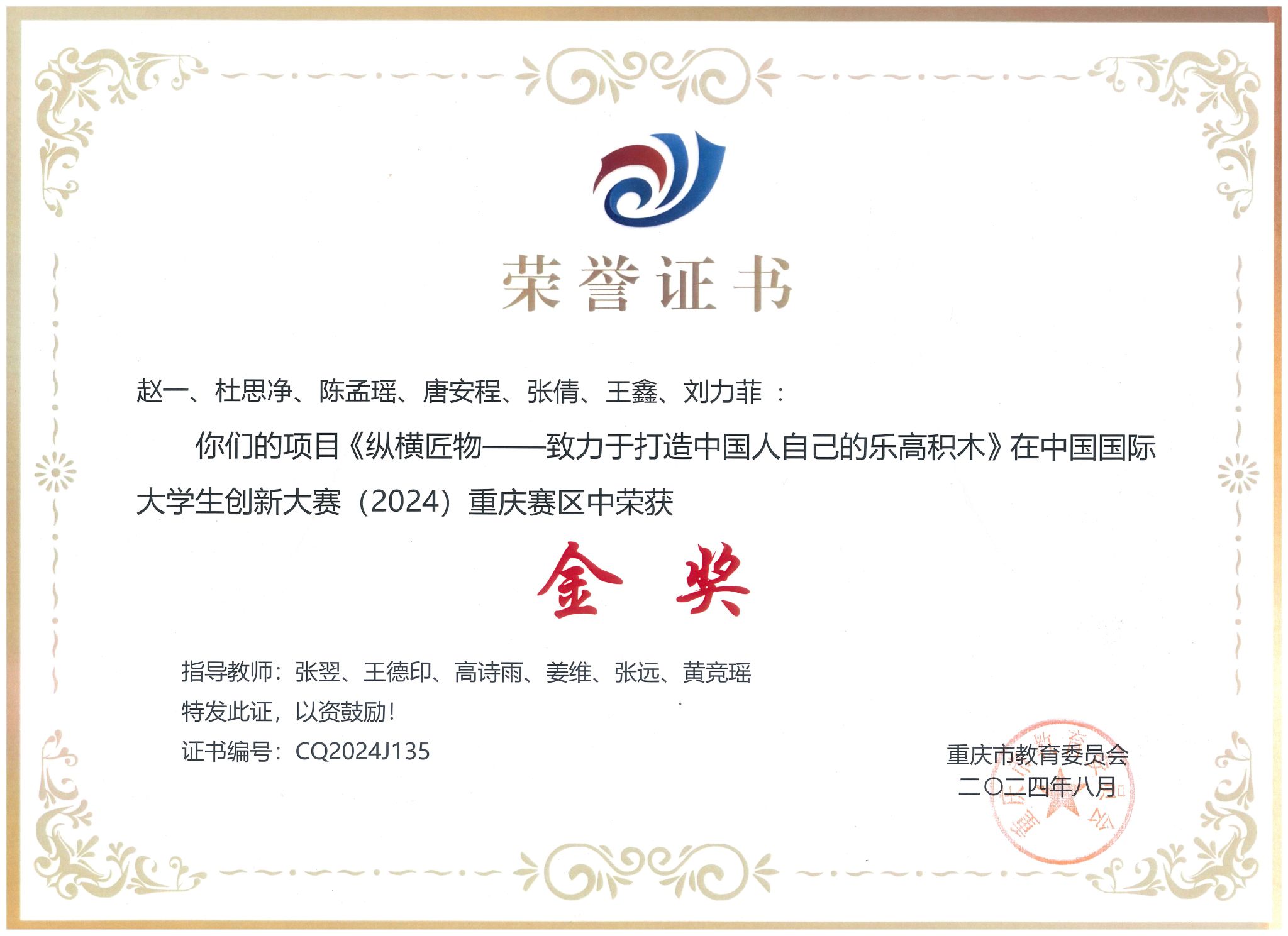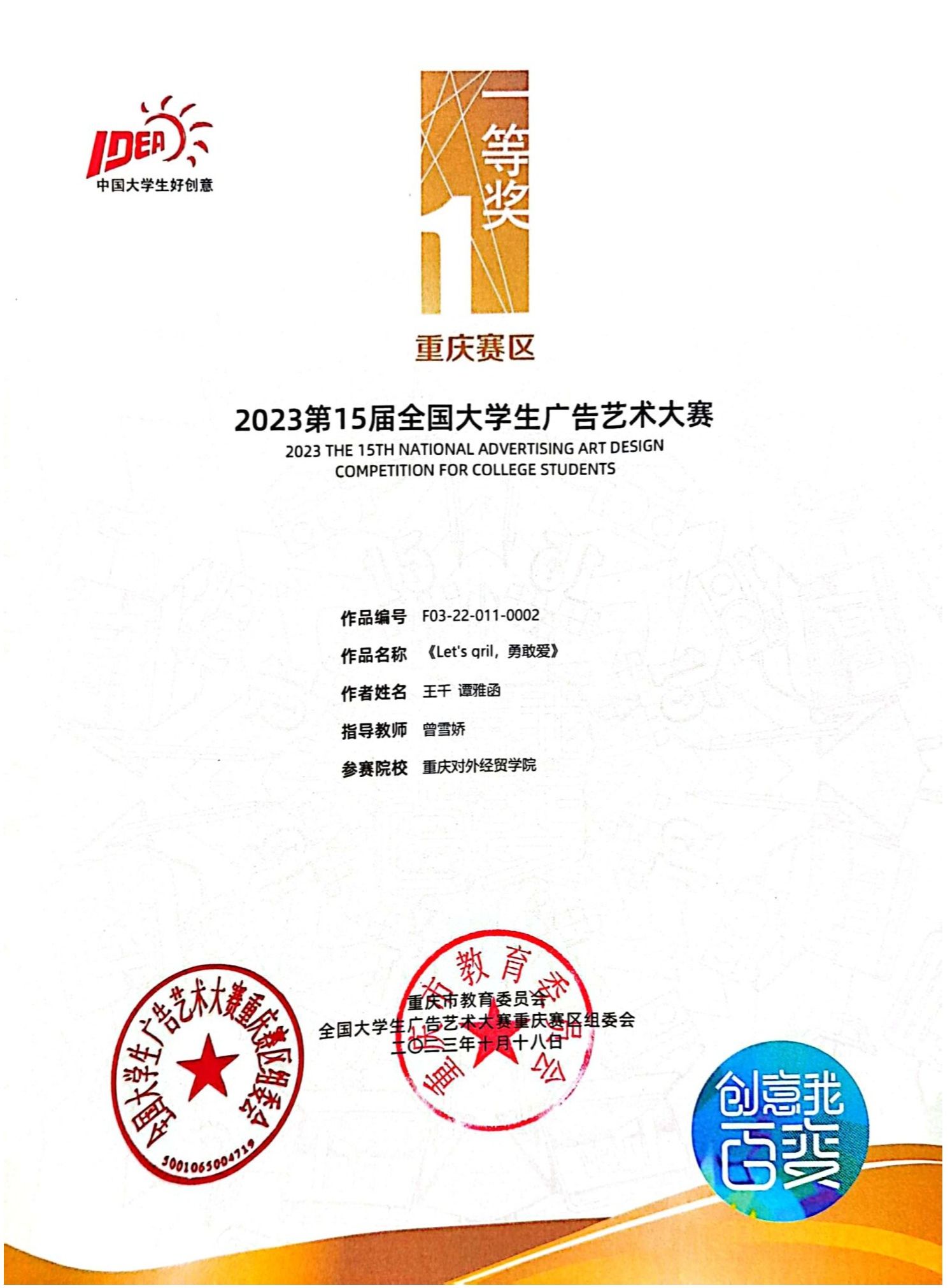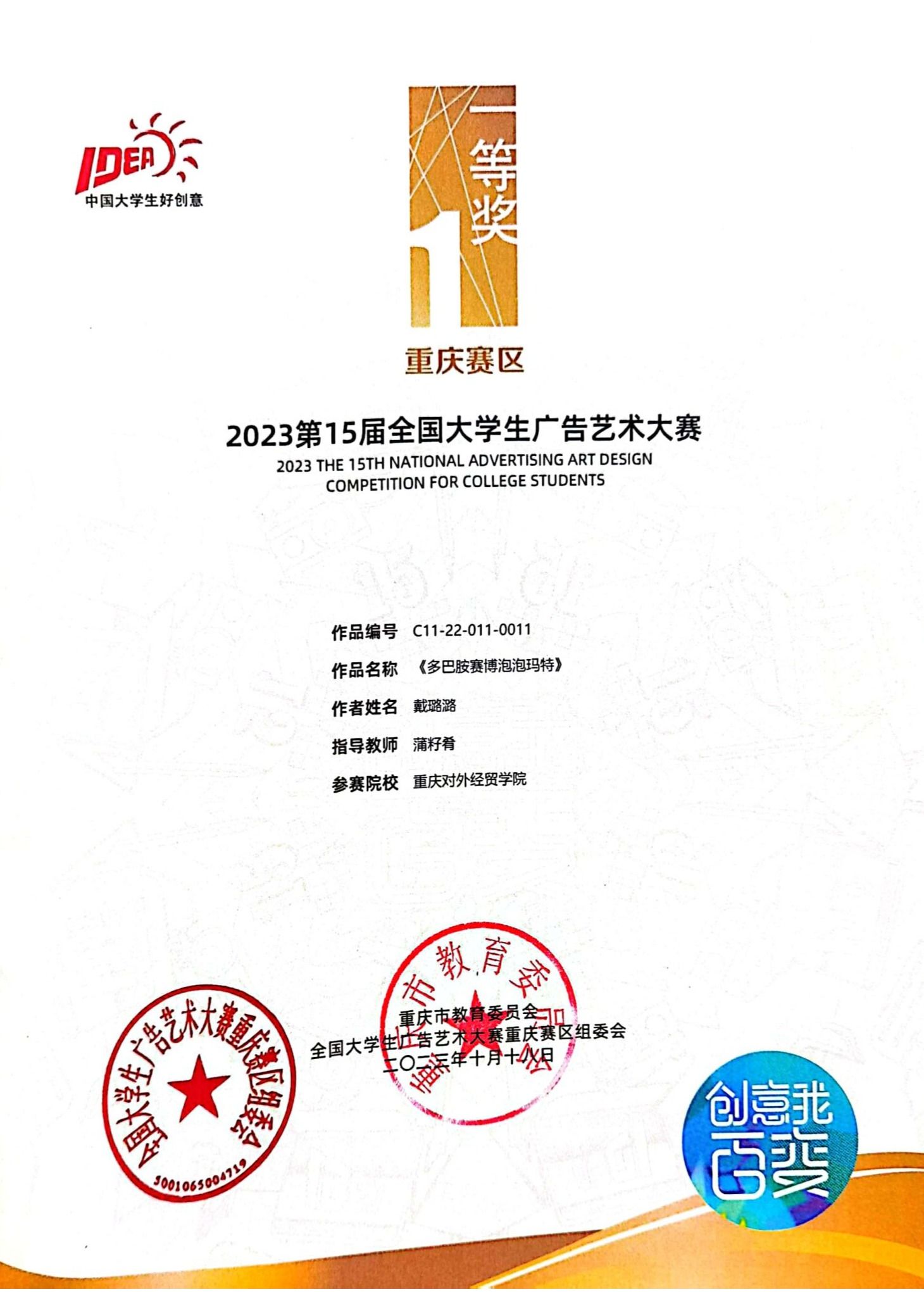 重庆市级荣誉: